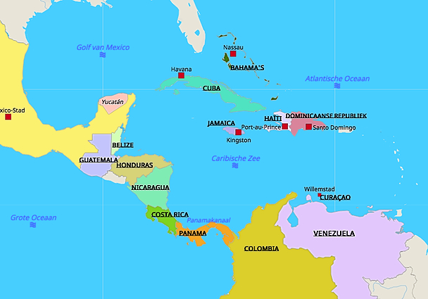Kleine kaart Midden-Amerika en Caribisch gebied-Blokboek Wereld (640x480)