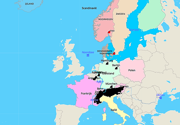 Topografie Duitsland, Zwitserland, Oostenrijk, Noord-Europa
