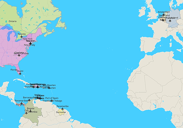 Kleine kaart Bestemmingen vanaf Curaçao (640x480)