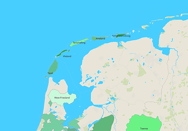 Kleine kaart Topo gebieden en eilanden Nederland (640x480)