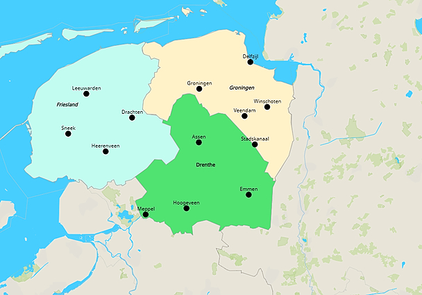 Kleine kaart Groningen, Friesland, Drenthe (640x480)