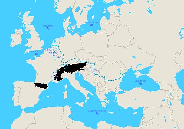 Kleine kaart Orohydrografische referenties van België en Europa (640x480)