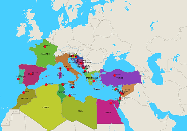 Kleine kaart Middellandse zee landen en hoofdsteden (640x480)