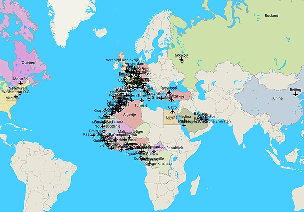 Kleine kaart Bestemmingen vanaf Casablanca (640x480)