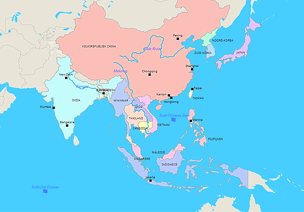 Kleine kaart Topografie Zuidoost-Azië (640x480)