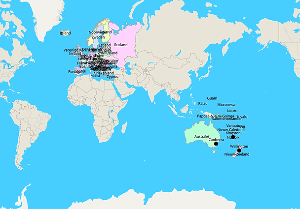 Kleine kaart Europa, Australië en Nieuw-Zeeland (640x480)