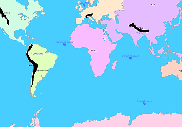 Kleine kaart werelddelen, oceanen en grote rivieren (640x480)