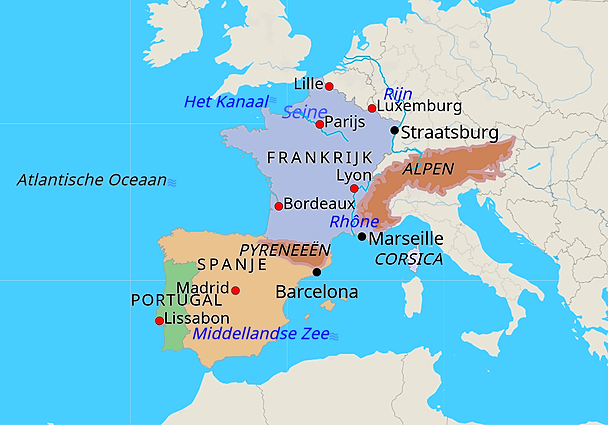Kleine kaart Frankrijk, Spanje en Portugal dl 1 (640x480)