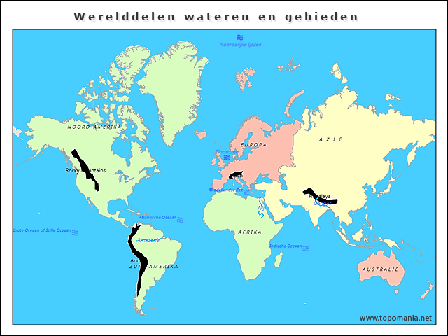 Kleine kaart Werelddelen wateren en gebieden (640x480)