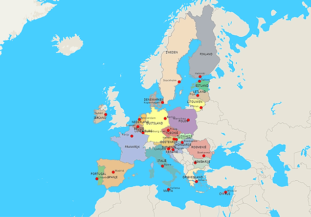 Topografie Zeeën, landen en hoofdsteden Europese Unie