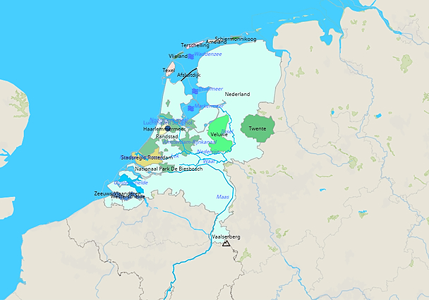 Kleine kaart Nederland Gebieden, wateren en eilanden (640x480)
