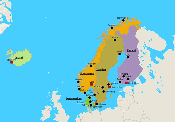 Topografie Denemarken - Zweden - Finland - Noorwegen