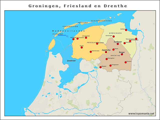 Topografie Groningen, Friesland en Drenthe