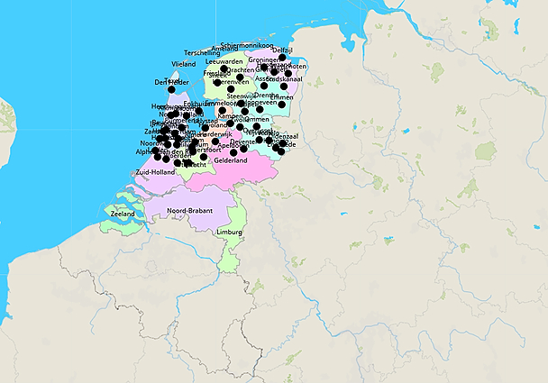 Selecteer een item uit de lijst om de locatie op de kaart te zien