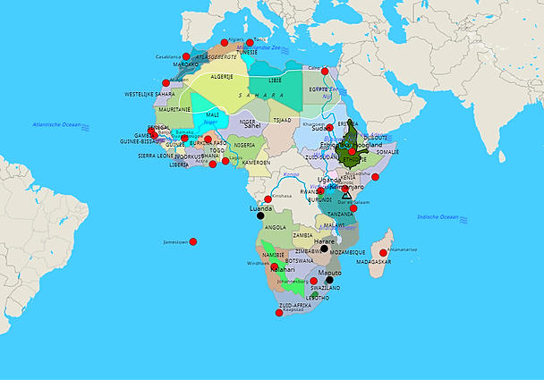 Kleine kaart landen, steden, gebieden en wateren van Afrika (640x480)