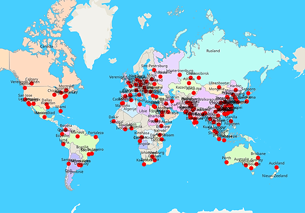 Kleine kaart steden met meer dan een miljoen inwoners (640x480)