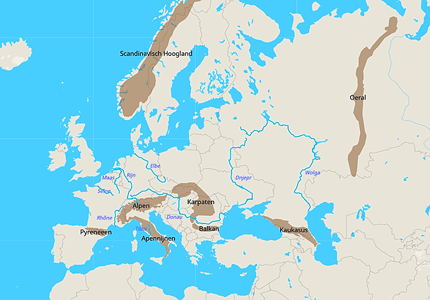 Kleine kaart Rivieren en gebergten Europa (640x480)