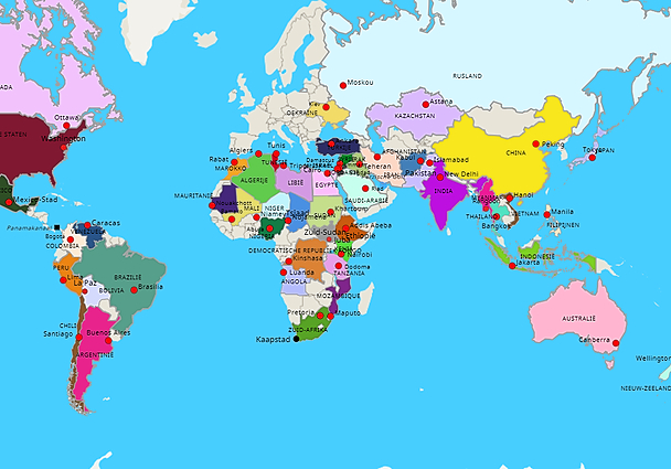 Topografie De Wereld (Landen en hoofdsteden A1d