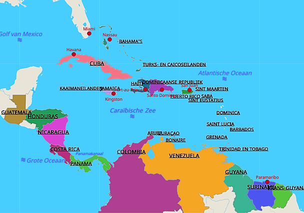 Kleine kaart Caribisch gebied - uitgebreid (640x480)