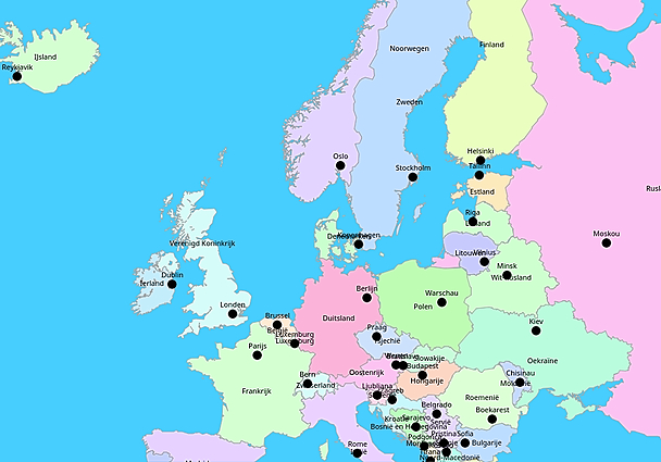 Kleine kaart 3VWO - Europa - landen en hoofdsteden (640x480)