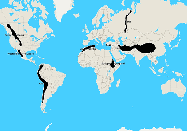 Kleine kaart gebergtes en plateaus van de wereld (640x480)