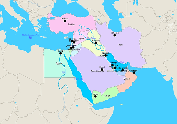 Kleine kaart landen in het Midden-Oosten (640x480)