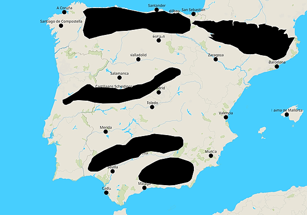 Kleine kaart Spaanse belangrijkste steden (640x480)