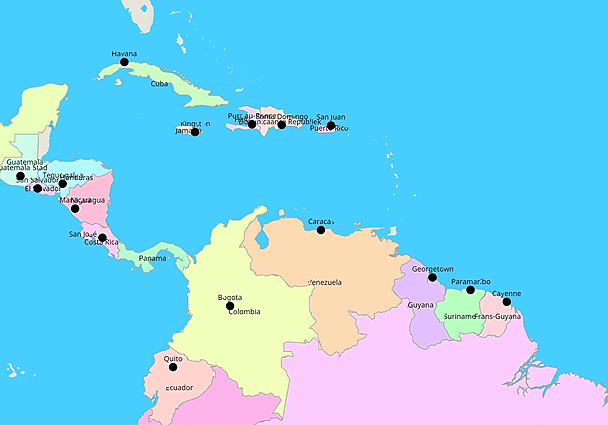 Kleine kaart Latijns Amerika landen en hoofdsteden (640x480)