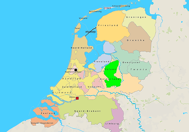 Kleine kaart Topografie Nederland gebieden (640x480)