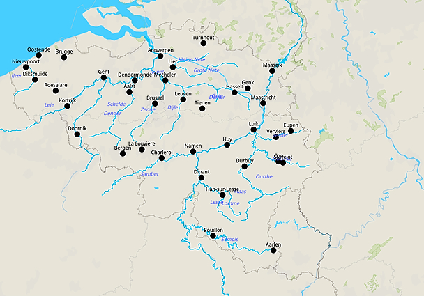 Topografie rivieren en steden belgie