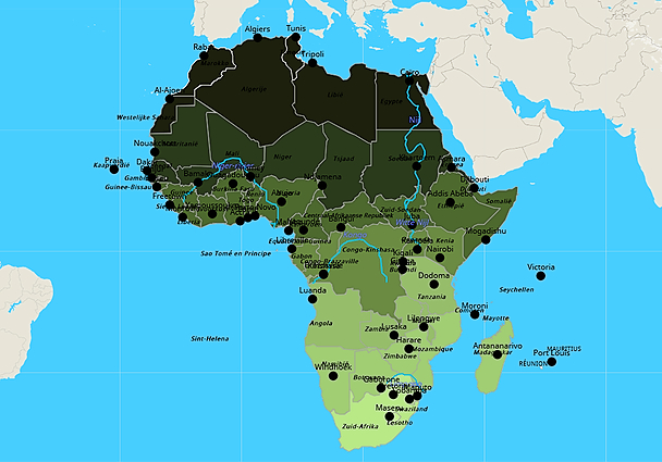 Kleine kaart Afrika (landen en hoofdsteden) (640x480)