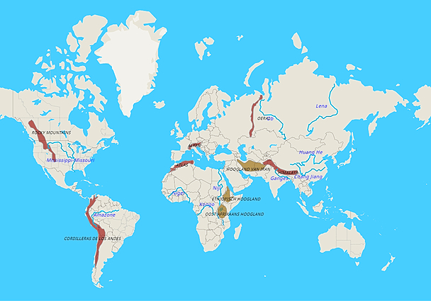 Kleine kaart Klas 6 Bergen en rivieren (640x480)