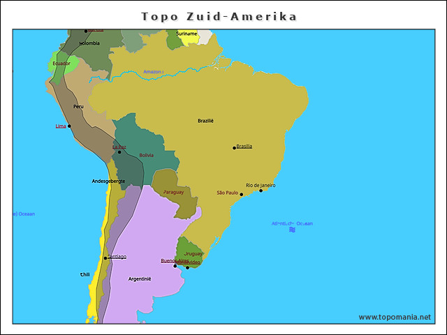 Kleine kaart Topo Zuid-Amerika (640x480)
