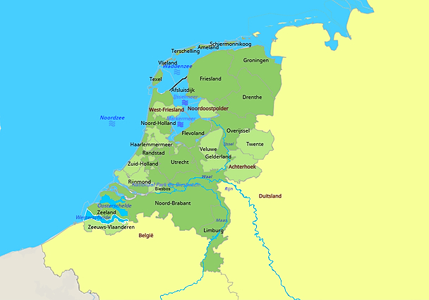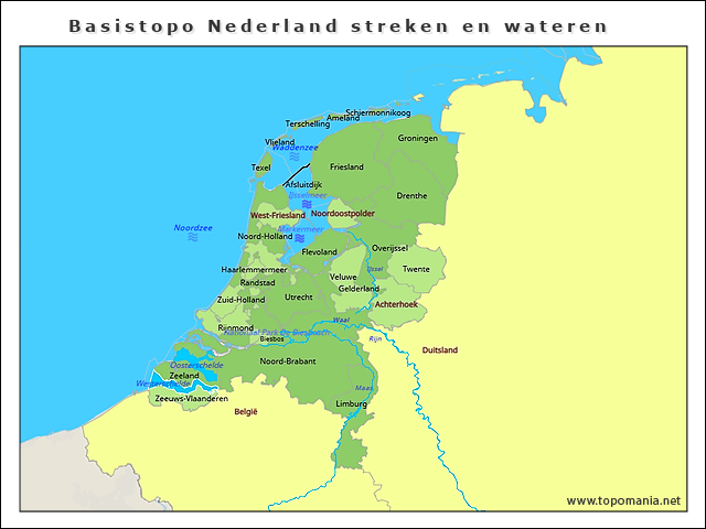 Kleine kaart Basistopo Nederland streken en wateren (640x480)
