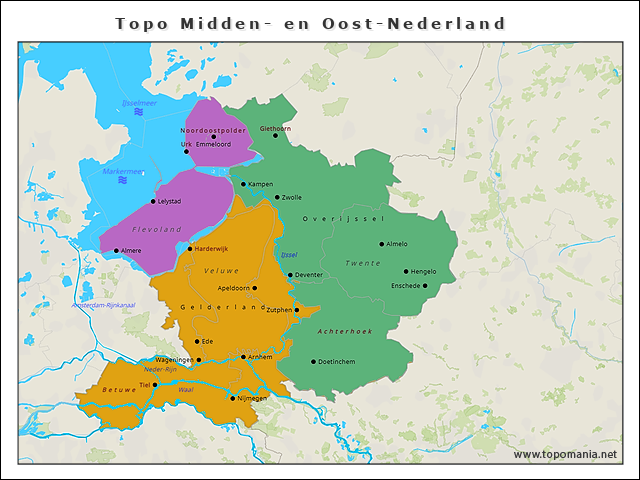 Kleine kaart Topo Midden- en Oost-Nederland (640x480)