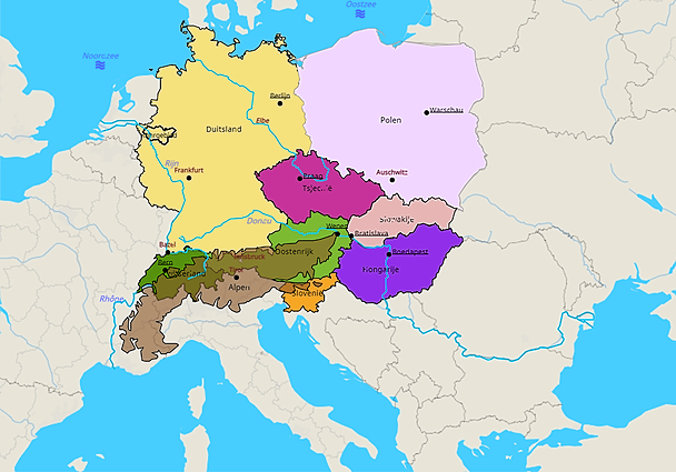 Kleine kaart Topo Midden-Europa (640x480)