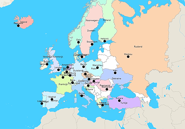 Kleine kaart Europa hoofdsteden en landen (640x480)
