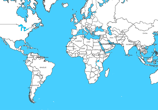 Kleine kaart Topo wereld oefenen - alleen landen (640x480)