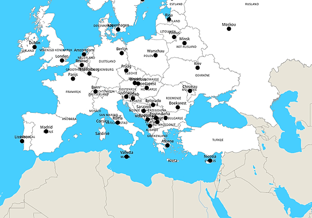 Topografie Europa landen en hoofdsteden