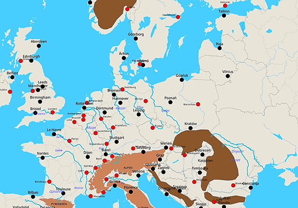 Topografie steden europa