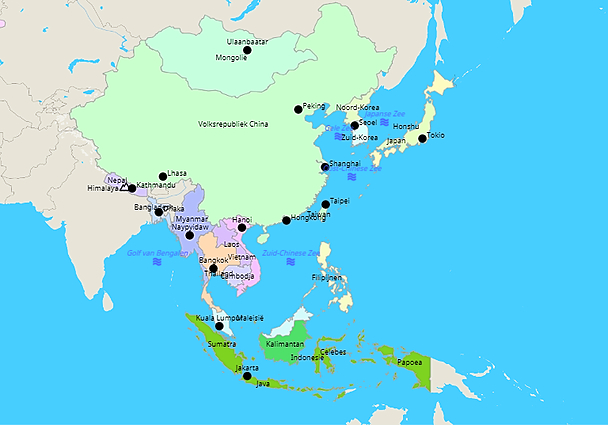 Kleine kaart Oost Azië- Zuid Oost Azië (640x480)
