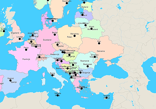 Topografie landen en hoofdsteden europa