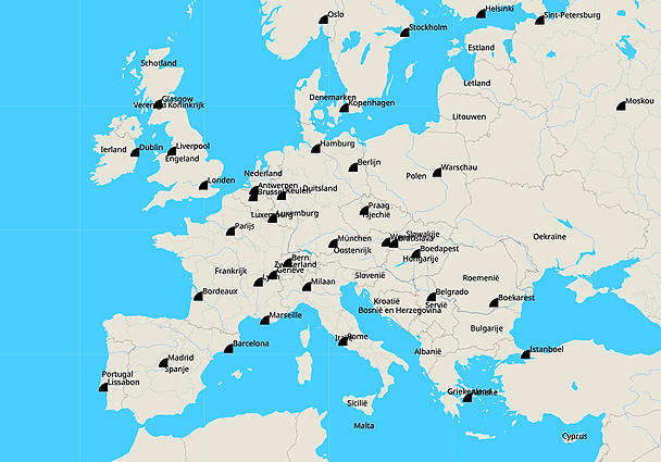 Kleine kaart Europa klas 2 - steden (640x480)