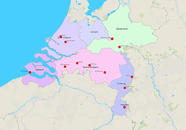 Kleine kaart Basiskaart Nederland PLAATSEN-ZUID NEDERLAND (640x480)