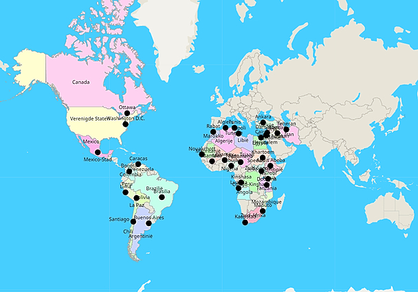Kleine kaart Landen en hoofdsteden Wereld (640x480)