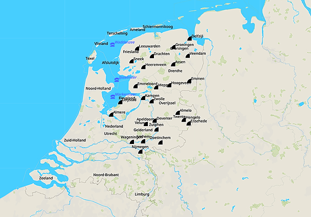 Kleine kaart Nederland - Groningen tm Gelderland (640x480)