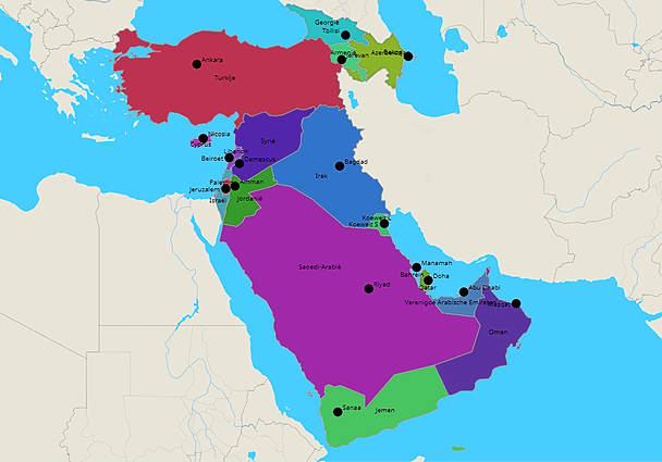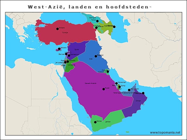Kleine kaart West-Azië, landen en hoofdsteden- (640x480)
