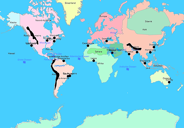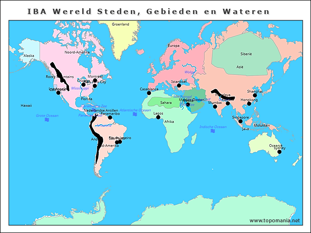 Topografie IBA Wereld Steden, Gebieden en Wateren