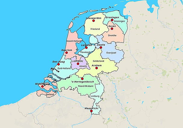 Kleine kaart Zandberg Groep 6 provincies en hoofdsteden (640x480)