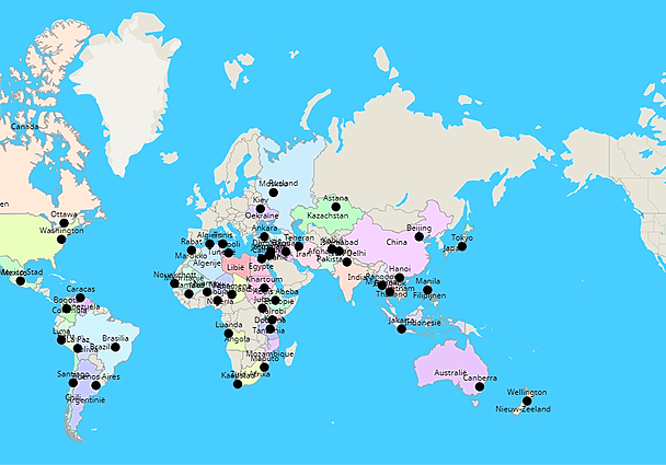 Kleine kaart Topo landen en hoofdsteden 1-35 (640x480)